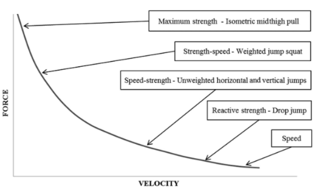 Figure 1: Standard model of the Force Velocity curve with examples of movements relative to each section of the curve (Brady et al, 2017)